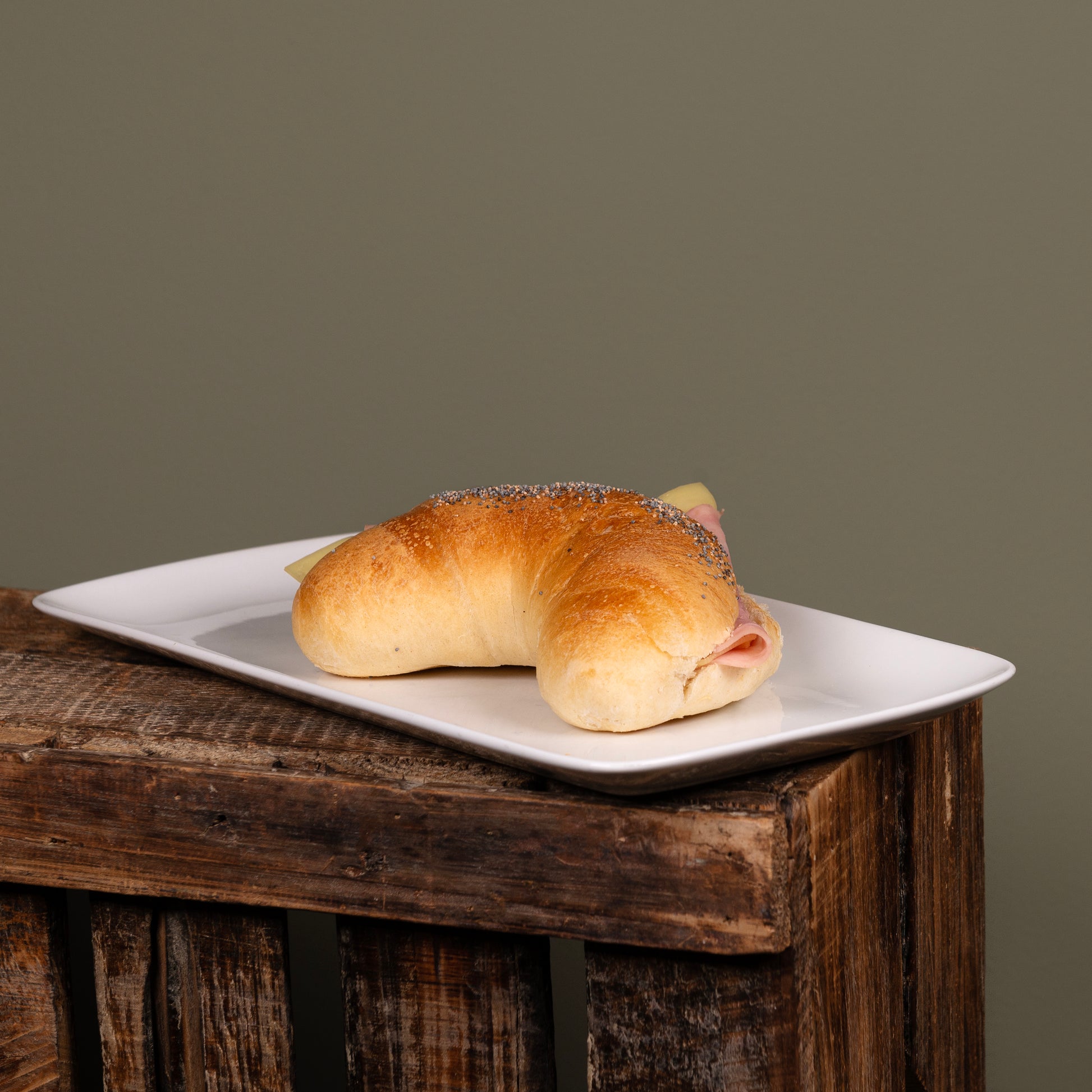 Våre populære små horn fylles med ost og skinke, og bare det, enkelt og greit! Supergod å varmes i micro, og enda bedre i pressjern.